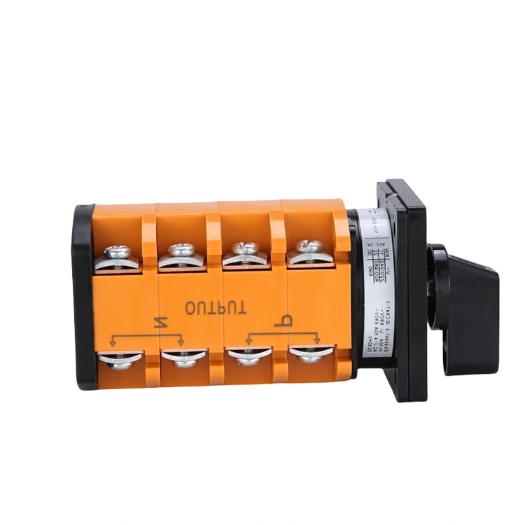 Deze schakelaar is een robuust elektrisch apparaat dat wordt gebruikt om de omschakeling van voeding en belasting te realiseren. Mechanisch gezien bestaat het uit een roterende as, nok, contactzitting, positioneringsmechanisme en een handgreep. Wanneer de hendel naar verschillende versnellingen wordt gedraaid, draait de as de nok, waardoor specifieke contacten worden aangesloten of losgekoppeld om het circuit te besturen.